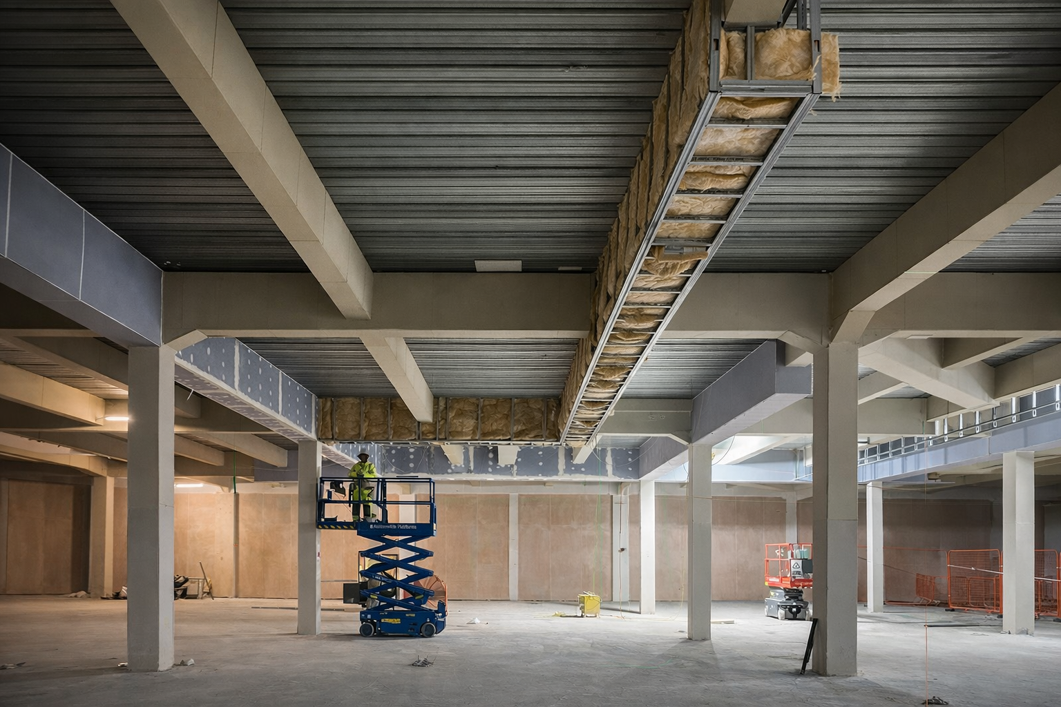 Suspended ceilings are a practical ceiling system installed below the main structure to create a clean, modern finish while concealing wiring, pipework, and ducting. They improve acoustics, enhance lighting efficiency, and provide easy access for maintenance — making them a smart, functional solution for commercial and residential spaces alike.